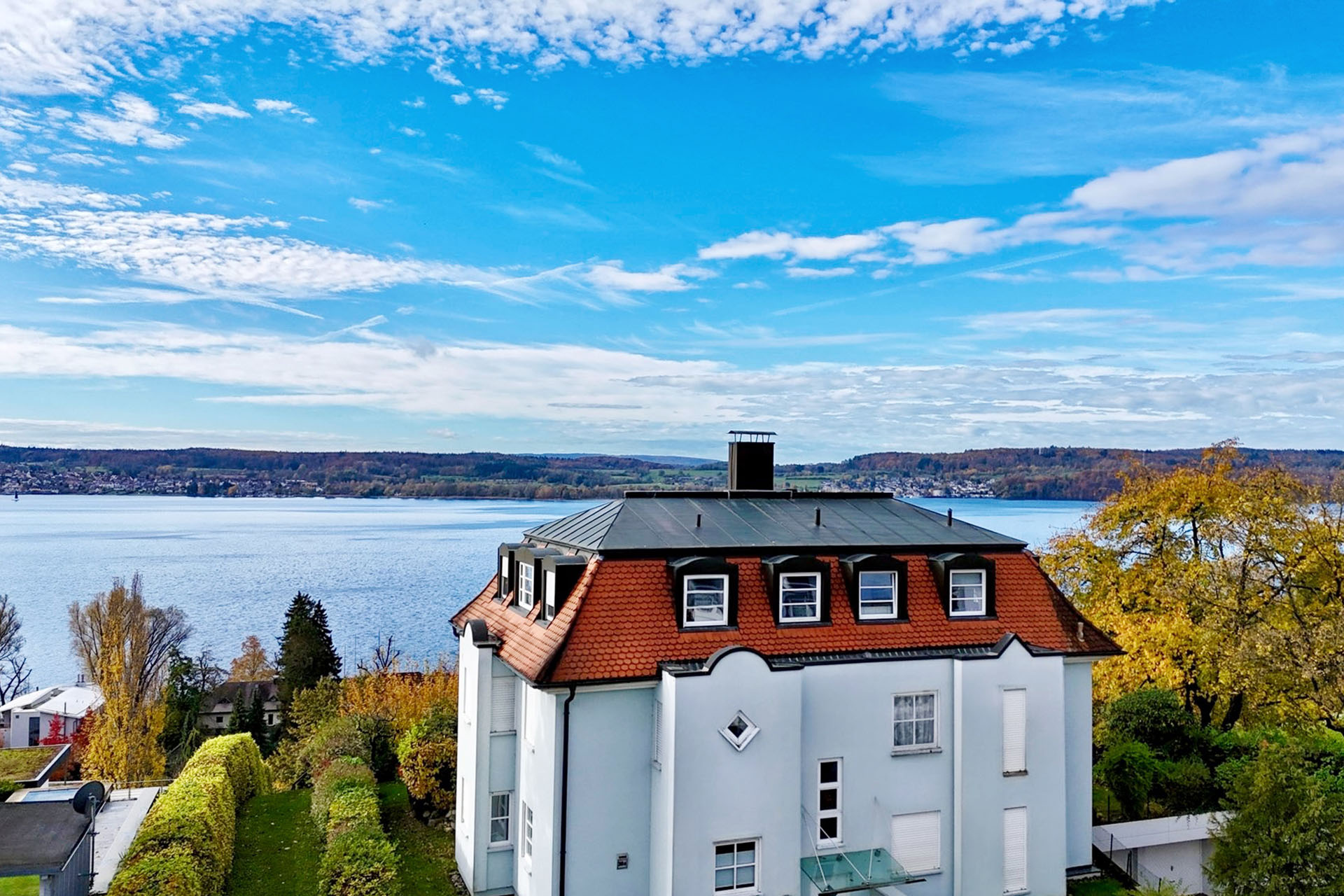 Die GWG mbH steht seit vielen Jahren für Qualität und Verlässlichkeit als Bauträger und Generalübernehmer in Baden-Württemberg. Individuell geplante, schlüsselfertig erstellte Bauprojekte und die Umsetzung von Kundenwünschen stehen dabei im Mittelpunkt. Die GWG bietet hochwertige Markenmaterialien und achtet auf Nachhaltigkeit sowie Barrierefreiheit. Unterstützt wird sie in der technischen und baulichen Umsetzung von der SHS GmbH, die mit erfahrenen Architekten und Fachingenieuren eine enge Zusammenarbeit pflegt. In Überlingen, einer der begehrtesten Lagen am Bodensee, entsteht auf einem ca. 880 m² großen Grundstück ein modernes Wohnhaus mit acht hochwertigen Wohneinheiten. Das Objekt verbindet zeitgemäße Architektur mit dem unverwechselbaren Bodenseeflair und bietet dabei Wohnkomfort auf hohem Niveau. Die durchdachte Raumaufteilung umfasst sechs helle 2-Zimmer-Wohnungen, eine großzügige 3-Zimmer-Wohnung und im Dachgeschoss eine exklusive 5-Zimmer-Maisonette-Wohnung mit Bodenseeblick. Großzügige Fensterflächen eröffnen nicht nur lichtdurchflutete Räume, sondern auch einen atemberaubenden Blick. Hochwertige Materialien und nachhaltige Bauweisen unterstreichen den besonderen Charakter dieses Projekts. Der erstklassige Standort und die gehobene Ausstattung garantieren – auf die Zukunft ausgerichtet – ein wertbeständiges Zuhause. E & G Immobilien, Ihr erfahrener Partner mit über 85 Jahren Expertise, begleitet Sie in allen Fragen rund um dieses Neubauprojekt. Diskretion, individuelle Beratung und die Erfüllung Ihrer Wünsche stehen für uns an erster Stelle. Gemeinsam mit der GWG setzen wir alles daran, Ihr neues Zuhause zu einem Ort zu machen, an dem Sie sich rundum wohlfühlen. Die Lage dieses exklusiven Neubau-Projekts in Überlingen besticht durch ihre außergewöhnliche Kombination aus Naturnähe und urbaner Infrastruktur. Eingebettet in eine der begehrtesten Gegenden am Bodensee, verbindet dieser Standort den Charme einer historischen Stadt mit allen Vorzügen moderner Lebensqualität. Überlingen, oft als das "Nizza Deutschlands" bezeichnet, verdankt diesen Beinamen seiner langen, malerischen Seepromenade, die das mediterrane Flair der Stadt unterstreicht. Die Promenade, nur wenige Gehminuten entfernt, lädt zu entspannten Spaziergängen ein und bietet eine traumhafte Aussicht auf den Bodensee. Der nahegelegene Stadtgarten, ebenfalls fußläufig erreichbar, ist eine grüne Oase der Ruhe und ideal für Erholung und Freizeit. Für Kulturinteressierte ist das imposante Münster St. Nikolaus, das größte spätgotische Bauwerk am Bodensee, ein absolutes Highlight und innerhalb von 10 Minuten zu Fuß zu erreichen. Die historische Altstadt von Überlingen, mit ihren charmanten Patrizierhäusern, engen Gassen und vielfältigen Einkaufsmöglichkeiten, liegt nur wenige hundert Meter entfernt. Hier finden sich auch zahlreiche Restaurants, Cafés und Boutiquen, die zum Verweilen einladen. Ärzte und Apotheken sind ebenfalls in der Innenstadt angesiedelt und somit bequem zu erreichen. Für Familien ist die Nähe zu mehreren Kindergärten und Schulen ein großer Vorteil – diese befinden sich in einem Umkreis von weniger als einem Kilometer und sind sowohl zu Fuß als auch mit dem Fahrrad schnell erreichbar.